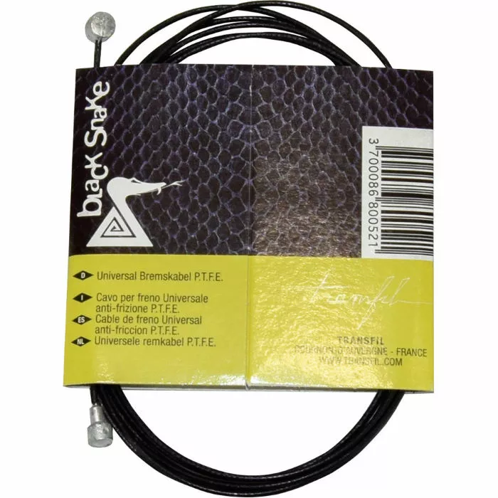 Suitable for both road bikes and mountain bikes (MTBs), the Transfil Black Snake PTFE Brake Cable features a Polytetrafluoroethylene (PTFE) construction with a Teflon coating for maximum strength and reliability, whatever your riding discipline.